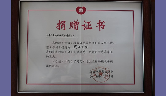 2014年,上海紅箭自動(dòng)化設(shè)備有限公司為上海市慈善基金會(huì)捐款